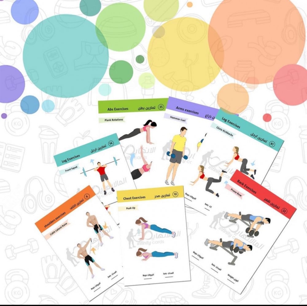 1️⃣ تحتوي على 100 بطاقة تمرين لجميع عضلات الجسم